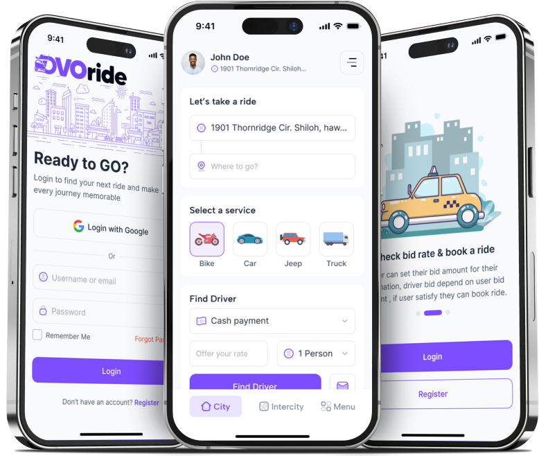 Los pasajeros ingresan los detalles de su viaje y los conductores presentan ofertas competitivas. Los pasajeros pueden comparar ofertas según el precio y las calificaciones.